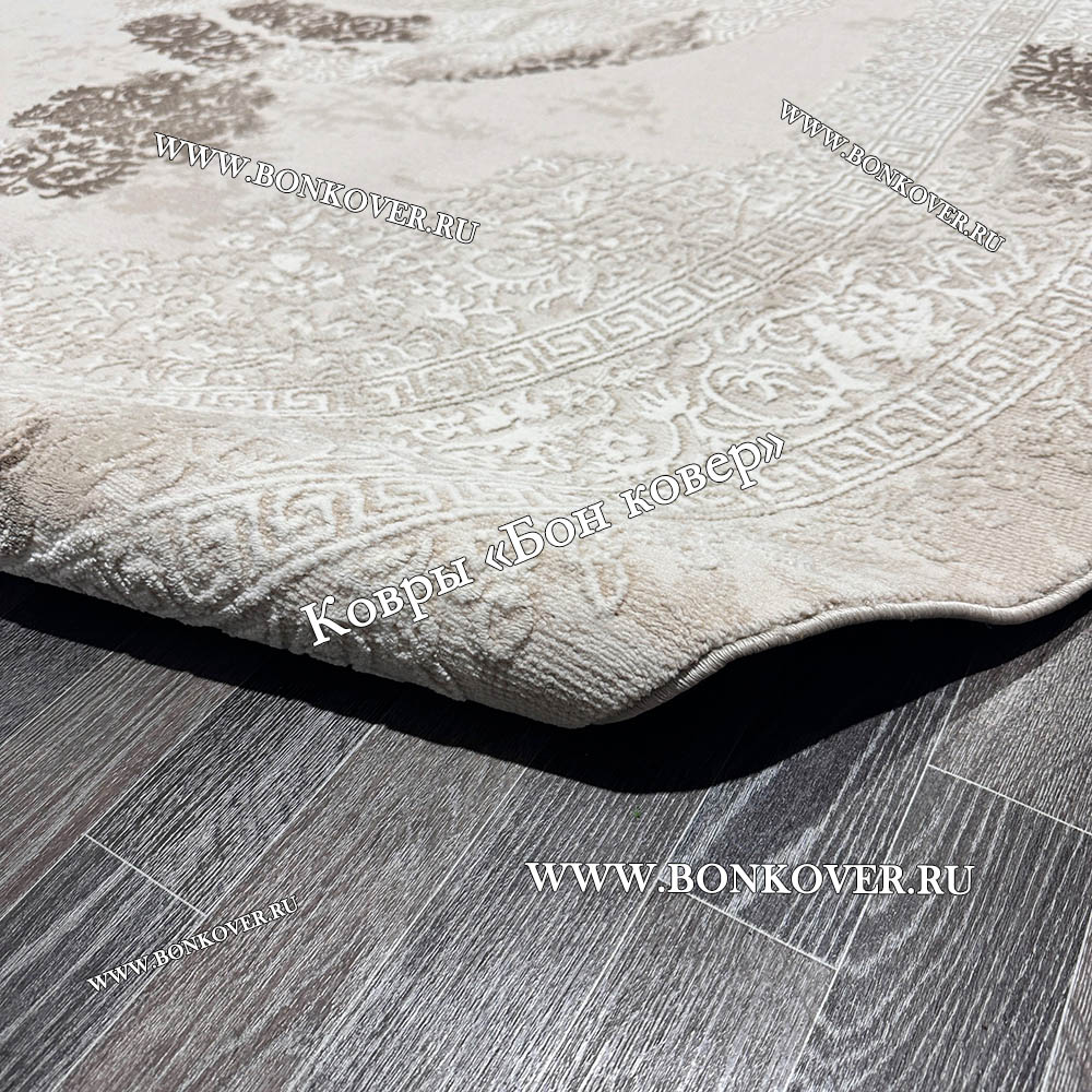 Изящный Классический ковер дизайн 104 Белый с бежевым Овал наполняет интерьер квартиры теплом и уютом, гармонично сочетает в себе изящество и стиль. Он соткан из высококачественного сырья, комфортный и долговечный.