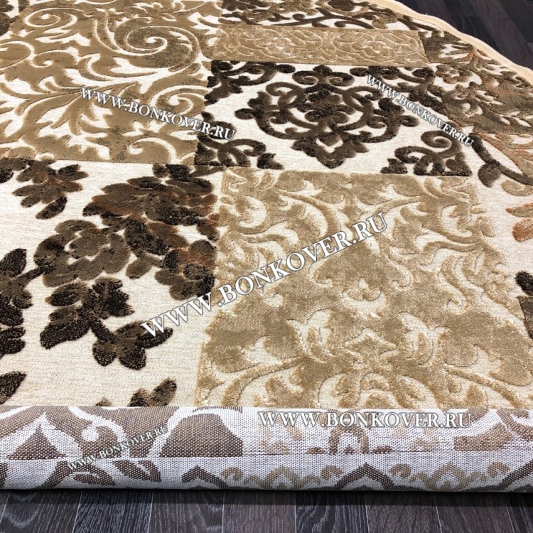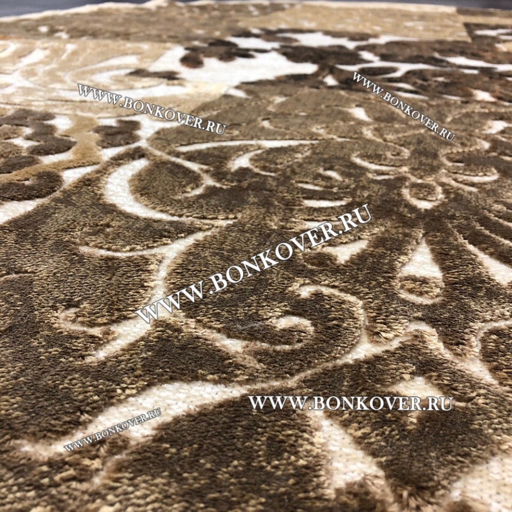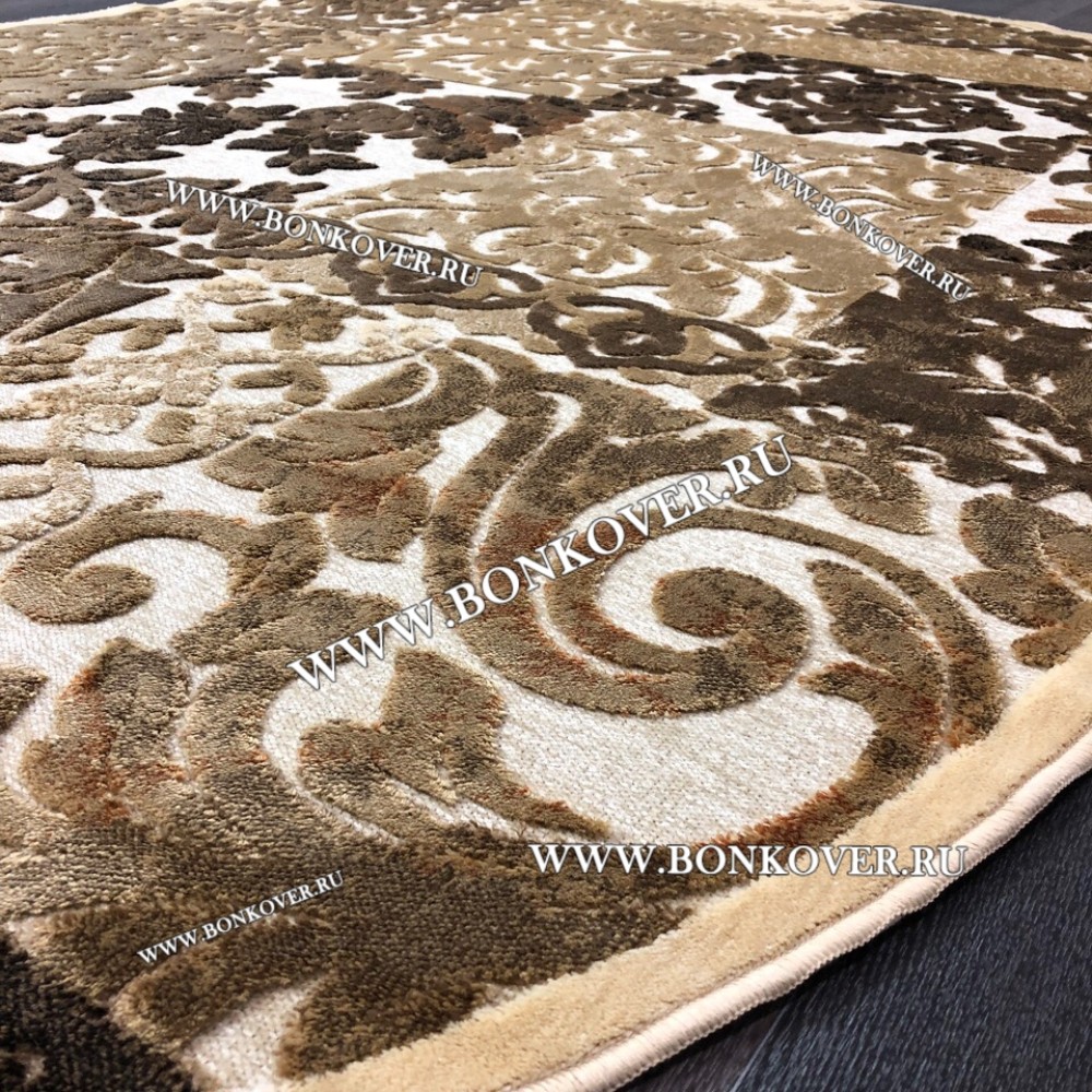 Ковер для Гостиной из Артшелка Дизайн 22 Бежево-Коричневый Овал станет превосходным дополнением интерьера, оформленного в современном или классическом стиле. Мягкое, но прочное, ковровое покрытие обеспечивает тепло- и шумоизоляцию, отличается длительным периодом эксплуатации, пожаробезопасностью, экологичностью и высокой износостойкостью, является отличным барьером от повышенной влажности в помещении и утеплителем для холодного пола. Благодаря качеству материалов, ковер не деформируется, сохраняет первоначальный вид под тяжестью предметов мебели. За его поверхностью легко ухаживать.