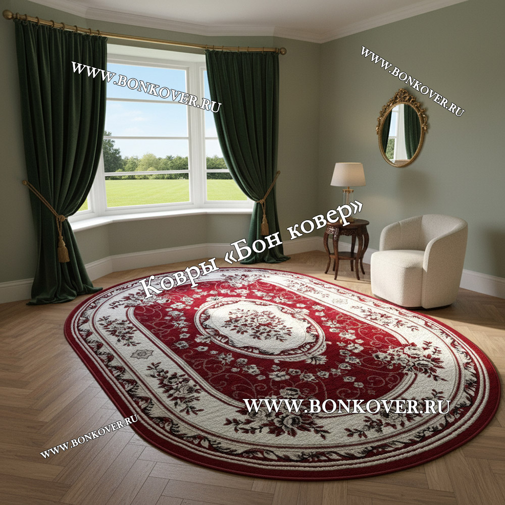Ковер Лайт Карпет New 4 Дизайн 18 Красный Овал станет стильным преображением вашей комнаты, подчеркивая высокий статус семьи владельца.